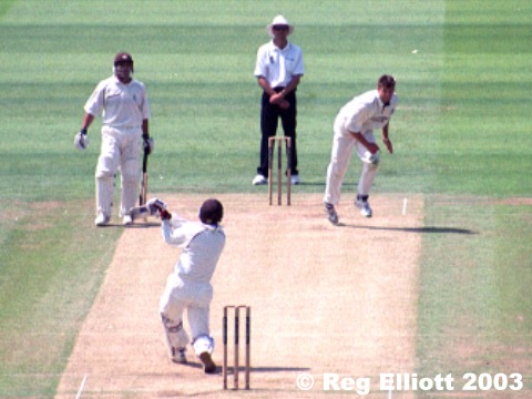 Saqlain Mushtaq drives Ashley Noffke straight back over