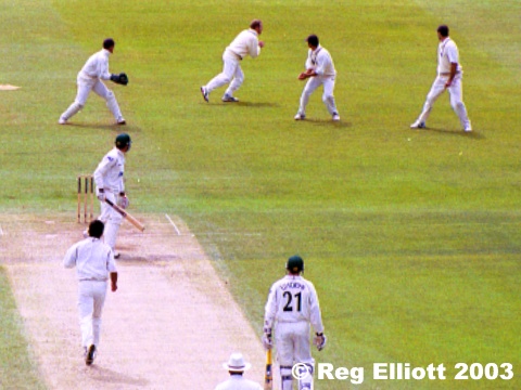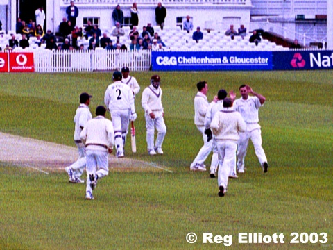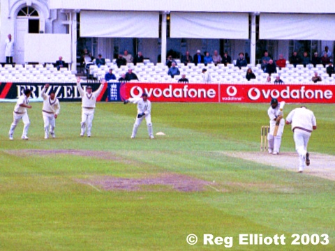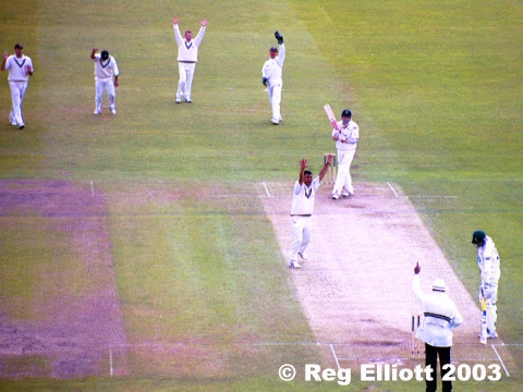 Oh brother! Darren Bicknell is lbw to Martin Bicknell for