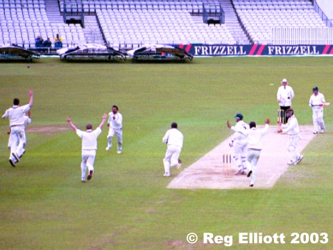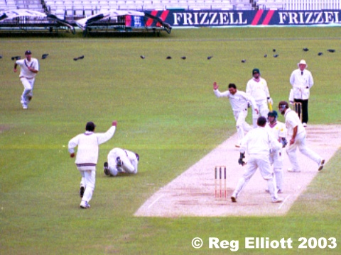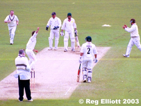 bowling of Saqlain. Leicestershire second innings 172-6. |