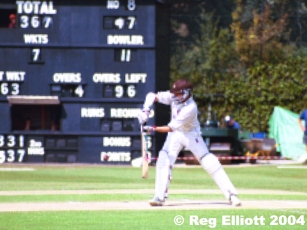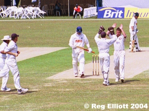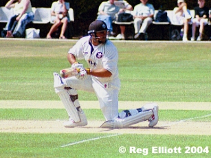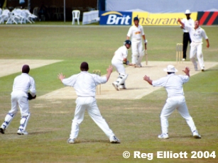 edge of Ian Bell's bat. The bowler is Philip Sampson. |